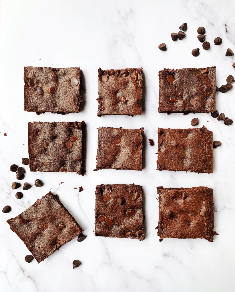 Note: I prefer my brownies thinner, and also I’m impatient and like them to cook fast. However, you can use a smaller pan and increase the baking time to get thicker brownies.