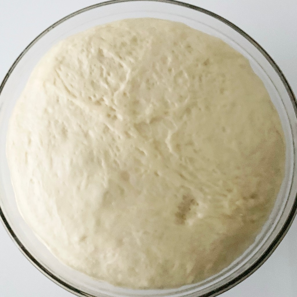- Your dough is finished proofing when it has doubled in size (see picture below for reference. Sometimes this can take longer or shorter than 90 minutes depending on a variety of factors like temperature and altitude, so don’t panic if it needs another half hour to finish proofing.